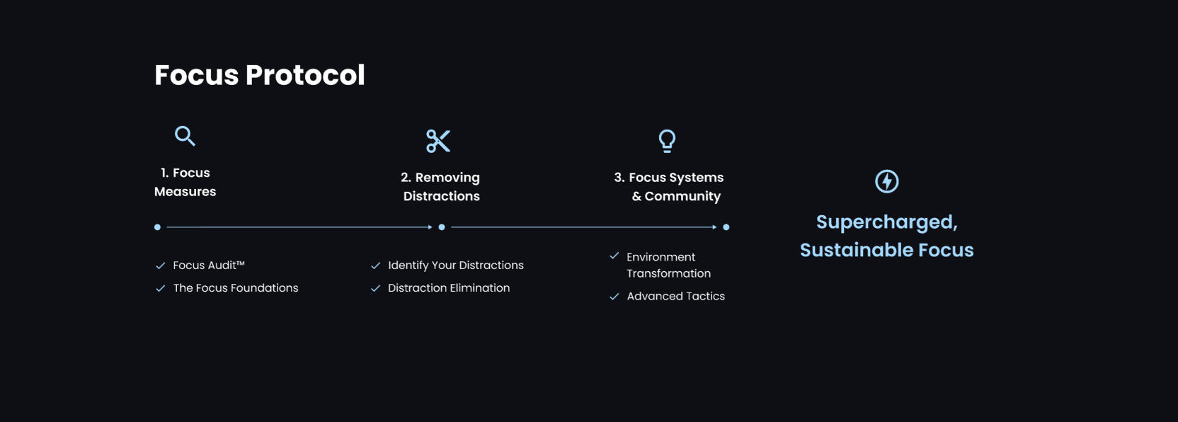Replace previous distractions with Focus Protocol focus systems and habits